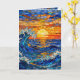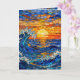 A birthday card that can be personalized with an illustration of a stained glass mosaic ocean waves and sunset illustration. Inside is a poem about the ocean and birthdays meaning.