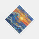A paper napkins with an illustration of a stained glass mosaic ocean waves and sunset illustration. These are perfect for a beach themed coastal birthday party.