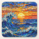 Oceanic Coastal Ocean Waves Sunset Square Paper Coaster
