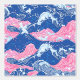 A seamless preppy hand-drawn pattern featuring a rough dark blue ocean with pink waves and white water swirls. The design combines dynamic oceanic elements with a whimsical, artistic touch, creating a bold and vibrant visual effect.