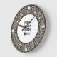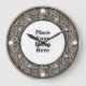 Ocelot round photo frame behind the hour marks, Place your photo here custom wall clock, your photo will appear behind the round photo frame for a truly professional look - light gold dots for hour marks - 12,3,6 and 9 being larger dots, in a diamond shaped pattern looks great on round or square clocks