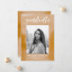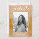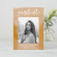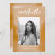 Modern watercolor graduation announcements featuring the graduate's photo with an ochre watercolor background. "Graduate" is displayed at the top of the invite in a white, hand-lettered watercolor script with the graduate's name, school name, and class year at the bottom.