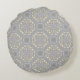 Octagons and Circles Retro Pattern Round Throw Pillow. A grey and cream yellow chic geometric, for everyday living and entertaining in a seamless pattern design. Trendy colours and style pillows for your couch, chair, bed, or patio. Works well with contemporary Mid Century modern style as well as eclectic vintage themes. I would be happy to rescale, tint, or design with you in mind, just message me to get started.