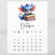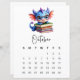 A clean monthly calendar beneath the illustration adds practical charm without distracting from the art.