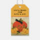 October Halloween wedding bridal shower thank you favour tags featuring bride and groom pumpkins. To personalise edit text to add name of bride and groom.