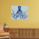 This beautiful blue wall poster has a print of Lord Bodner's antique octopus drawing from the 19th Century. Here, it has been recolored blue and placed on a pretty, vintage light-blue, slightly distressed background that has a light anchor pattern. The result is this unique poster art to match your nautical and beach theme home decor. The fancy, Victorian octopus has plenty of waving tentacles. See matching items and color variations in our store!