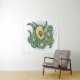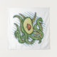 A funny cartoon illustration of a sea creature or monster that is half avocado and half octopus. This funny beast has an avocado for its head and octopuses green tentacles.