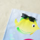 This beach towel design by The Burlap Frog™ features a pink, turquoise and purple octopus, yellow fish and starfish on the sand in the ocean. Copyright ©2018 The Burlap Frog™