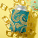 Teal and Gold Octopus Can Coolers or Bottle Coolers - MIGNED Art Painting