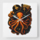 Add a touch of imagination and rhythm to your space with this stunning octopus-themed wall clock. This unique design features a vibrant orange octopus entangled with vintage musical instruments like guitars, trumpets, and drums – all set in a steampunk-inspired aesthetic.