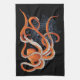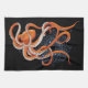 An orange octopus against a backdrop of black. Octopus tentacles in and around bubbles and a blue mandala