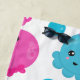 The fabric is soft and fluffy, feels great on the skin. The quality seems to be very good, I have not yet tested how absorbent the fabric is. The colors were vivid, the lines of the design clear, all in all, a great result.