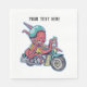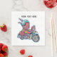 A cartoon picture of a funny octopus riding a motorbike. This octopus is wearing a motorcycle helmet and goggles.