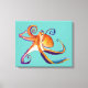 A vibrant colourful orange sealife octopus illustration original art by artist Sacha Grossel. Watercolor occtopus sea creature design. Under the sea theme. Aquatic ocean art.
