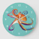 A vibrant colourful orange sealife octopus illustration original art by artist Sacha Grossel. Watercolor occtopus sea creature design. Under the sea theme. Aquatic ocean art.