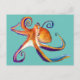 A vibrant colourful orange sealife octopus illustration original art by artist Sacha Grossel. Watercolor occtopus sea creature design. Under the sea theme. Aquatic ocean art.