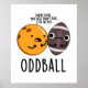 Oddball Funny Football Pun features a bowling ball telling a football he's just a little odd. Perfect pun gift for family and friends who love cute oddball puns.