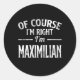Of Course I'M Right I'M Maximilian Classic Round Sticker