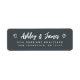 A modern and charming off-black return address label designed for couples who love a warm, personal touch. This design features playful handwritten-style names accented with sweet heart details, paired with clean white address text on a soft black background. The long rectangular format is ideal for envelope addressing and adds a polished yet relaxed look to your mail.