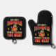 Off Duty Firefighter Chilli Proudly Seeking Heat Oven Mitt & Pot Holder Set