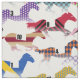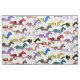 Fabric of horse silhouette racing in 13 different jockey silk colours combos on a white background. You can make the pattern larger or smaller on this fabric. You can also pick from 7 different types of fabric to have this race horse printed on.