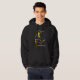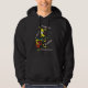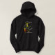 The Off World Studio Guitar Dog adorns this dark hooded sweatshirt