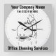 Commercial cleaners wall clock. Clock for an office cleaning or factory cleaning business. Promote your office cleaning business. Make it personal by adding your company name and phone number. Cleaning services promotional wall clock.