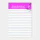 "From the desk of" followed by your name post its are perfect for school, varsity and office use. Organise and colour code your projects, study books and contracts with these easy to peel and stick white "post it" stationery accessories that have a fountain pen with ink set to the right of white templates on hot pink which have folio notepad horizontal lines in blue below it. IDEAL FOR - Contracts, agreements requiring a clients signature, as a check list of things to do or a daily organiser. CUSTOMIZE IT - Delete, change or personalise the wording