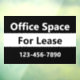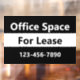 This commercial leasing window cling says 'Office Space For Lease'. The text can be changed to show a custom message. Digits for your phone number are at the bottom.