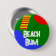 Beach Bums Unite this Summer! Bright colours and bold graphics fill this button with a clear message: It's too nice to stay in the shade. Head for the beach and enjoy a day in the sun!