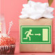 Sticker of the official symbol used to point towards emergency (fire) exits in Europe. (facing right)