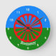 Show off your gypsy heritage with this official Romani Roma gypsy flag of the Romany Gipsies and Travellers with your own text by using the customise menu. The flag represents the green of the earth and the blue of the sky with a traditional Gypsy caravan vardo wagon wheel, representing travel.