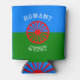 The official Romany gypsy travelers flag of the Roma gipsies with a green and blue background representing the sky and earth with a bright red mandala wagon wheel representing travel, and personalised text templates easily change the text or add your name to create to your own custom flag design.