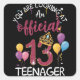 Official Teenager 13th Birthday Girl 13 Year Old Square Sticker