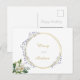 The design features white roses, which give a romantic impression with a white background adding to the elegant impression of green leaves and other watercolor elements in white, and more. bracelet or circle in the middle is golden yellow with flowers on the left side displayed so beautifully add beauty to this postcard