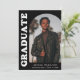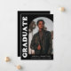 Stylish and trendy graduation announcement featuring the graduate's photo on the front with an offset arch photo frame. "Graduate" is displayed in bold white retro lettering on a black background. Personalize the front of the arch photo graduation announcement by adding the graduate's name, school, and graduation year. The card reverses to display an additional 3 photos with space for custom text such as future college plans, career plans, graduation party details, etc. The black graduation announcement is perfect for both high school and college graduates.
