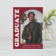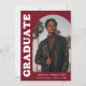 Stylish and trendy graduation announcement featuring the graduate's photo on the front with an offset arch photo frame. "Graduate" is displayed in bold white retro lettering on a maroon/burgundy background. Personalise the front of the arch photo graduation announcement by adding the graduate's name, school, and graduation year. The card reverses to display an additional 3 photos with space for custom text such as future college plans, career plans, graduation party details, etc. The burgundy graduation announcement is perfect for both high school and college graduates.