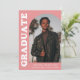 Stylish and trendy graduation announcement featuring the graduate's photo on the front with an offset arch photo frame. "Graduate" is displayed in bold white retro lettering on a rose pink background. Personalise the front of the arch photo graduation announcement by adding the graduate's name, school, and graduation year. The card reverses to display an additional 3 photos with space for custom text such as future college plans, career plans, graduation party details, etc. The pink graduation announcement is perfect for both high school and college graduates.