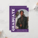 Stylish and trendy graduation party invitation featuring the graduate's photo on the front with an offset arch photo frame. "Graduate" is displayed in bold white retro lettering on a purple background. Personalise the front of the arch photo graduation party invitation by adding the graduate's name, school, and graduation year. The invite reverses to display your graduation party details. The purple graduation party invitation is perfect for both high school and college graduates.