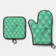 Ogee Gold Diamond Tufted Teal Custom Your Name Oven Mitt & Pot Holder Set