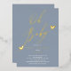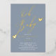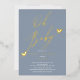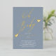 Gold Foil baby shower invitation featuring a modern script set on a blue background. Flip our modern invitation over to view a coordinating back.