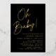 Simple baby shower invitations featuring "Oh Baby!" displayed in a bold gold foil script with a black background. Personalise the minimalist baby shower invitations with the mother's name and shower details. The black and gold foil baby shower invitations reverse to display your pregnancy photo and custom text. The invites are perfect for gender-neutral baby showers!