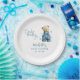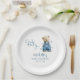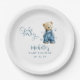 Set the scene for a joyful celebration with these blue jean baby themed baby shower paper plates. Featuring an adorable bear in denim dungarees, and playful blue stars scattered across a modern baby shower template.