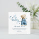 Set the scene for a joyful celebration with these blue jean baby themed baby shower thank you cards. Featuring an adorable bear in denim dungarees, a sweet denim bow, and playful blue stars scattered across a modern thank you template, they're perfect for honoring the parents to be.
