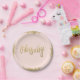 Chic blush pink and gold faux glitter baby shower paper plates. Designs are flat printed illustrations/graphics - NOT ACTUAL GOLD GLITTER.