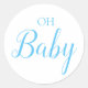 Oh Baby Boy Gender Reveal Blue Script Classic Round Sticker