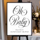 This stylish baby shower welcome sign features a classic white background, elegant black calligraphy script, and typography. The script greeting on the front says "Oh Baby". Simply edit the template with your details and choose any options. Coordinating items are available in our store or the design collection.