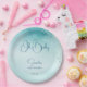 Oh baby cyan aqua blue baby shower template printed custom paper plates personalised baby shower tableware simple abstract watercolor modern baby shower printed plates
