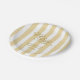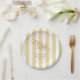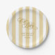 Gold and white striped "Oh Baby" baby shower paper plates bring timeless elegance to your celebration, perfect for a gender-neutral or classic baby shower theme. Featuring vertical golden yellow stripes with graceful calligraphy lettering, this refined design includes customisable text for the name and date, creating a coordinated and personalised touch for your table setting. Ideal for pairing with matching invitations, napkins, and décor, these stylish plates add sophistication to any upscale baby shower while keeping the atmosphere festive and celebratory.