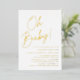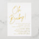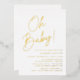 Simple baby shower invitations featuring "Oh Baby!" displayed in a bold gold foil script with a white background. Personalise the minimalist baby shower invitations with the mother's name and shower details. The gold foil shower invitations reverse to display your pregnancy photo and custom text. The invites are perfect for gender-neutral baby showers!